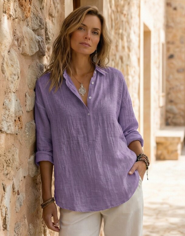 The linen feels airy but still elevated, and the cut makes it easy to style with anything. I’ve worn it to brunch, the office, and even on a weekend trip, it works for everything.”