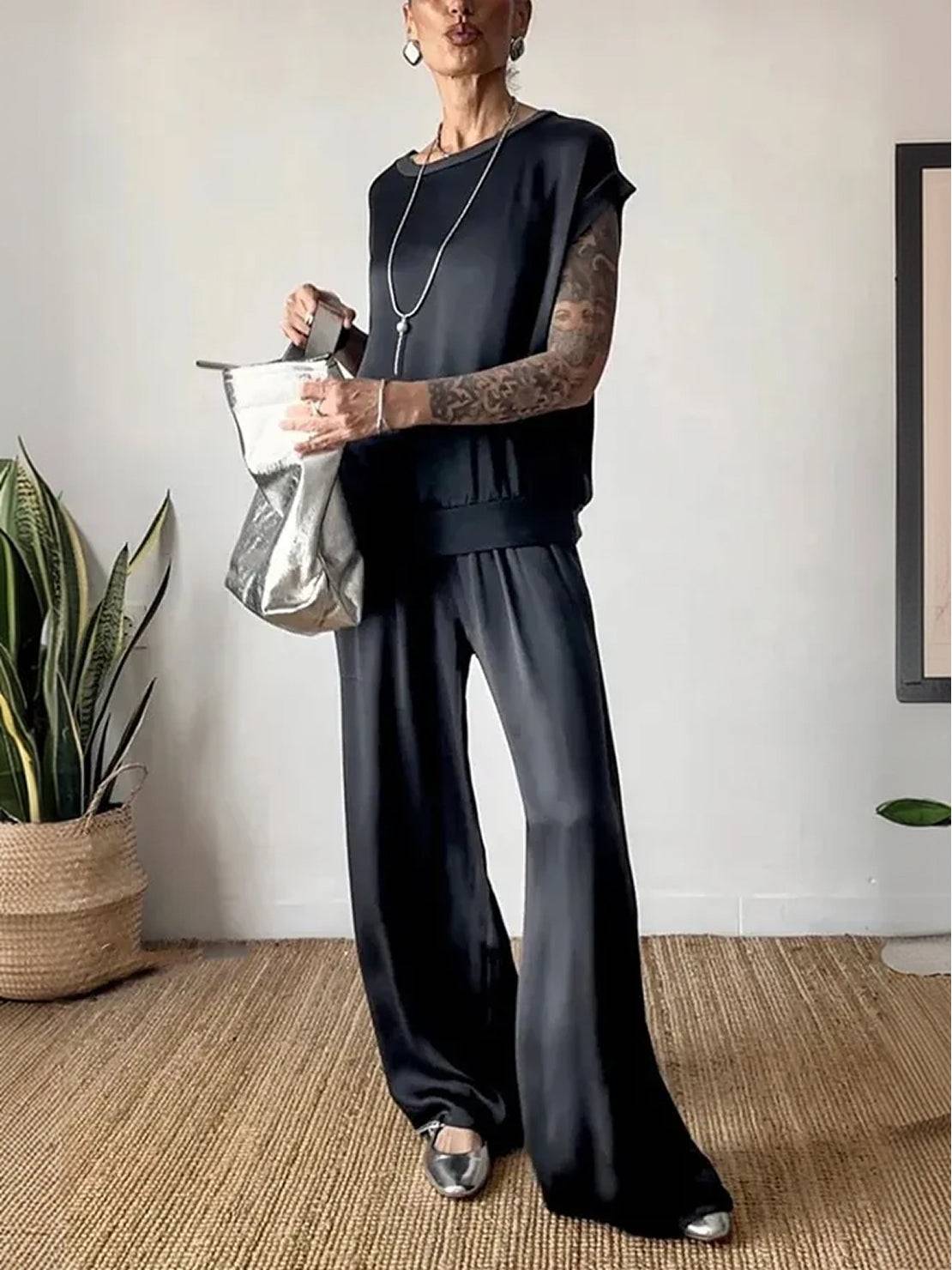 • This satin set moves with you - The fabric flows as you walk, giving you that luxury feel while letting you move freely all day.